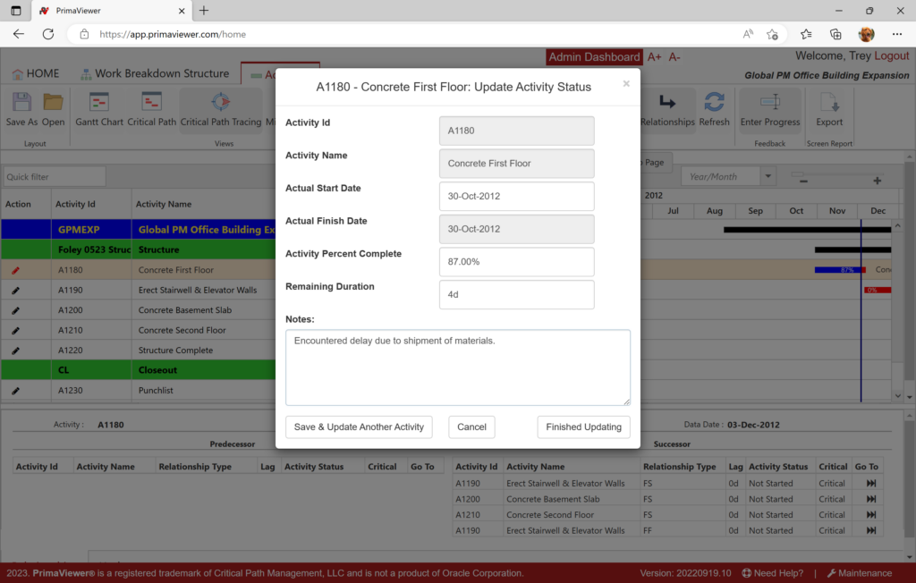 Enter progress notes & for the P6 Scheduler. Don’t Worry! The XER file is NOT changed!